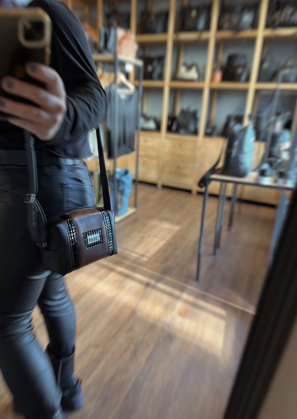 • Materiales: eco cuero negro + engomado marrón + texturado negro + forreria impermeable
