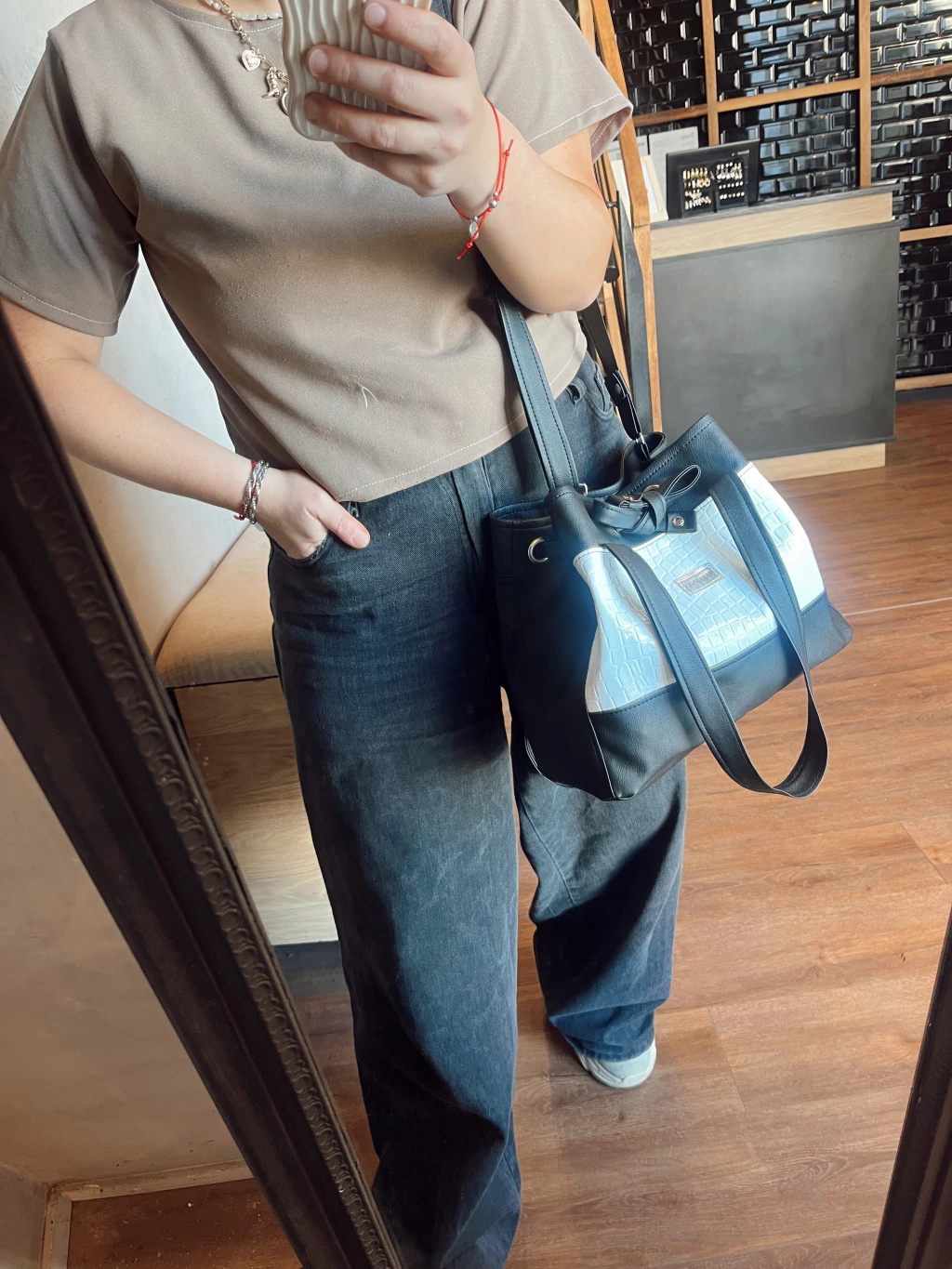 • Eco cuero negro + croco blanco + forreria impermeable