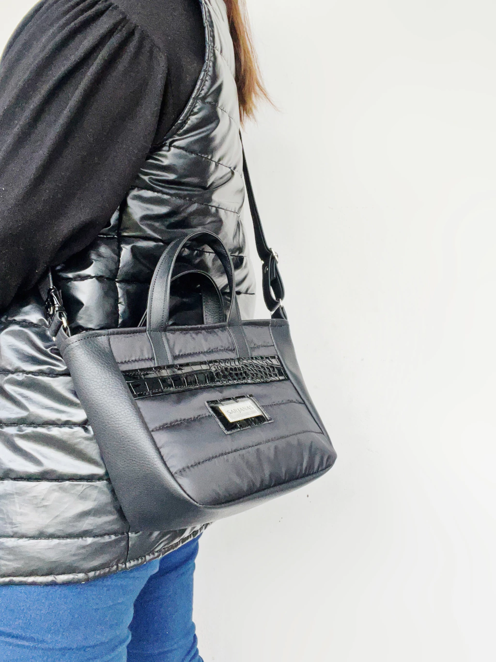 • Eco cuero negro + puffer negro + croco + forreria impermeable